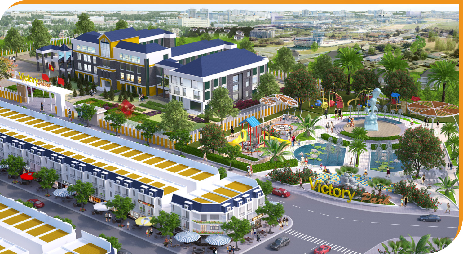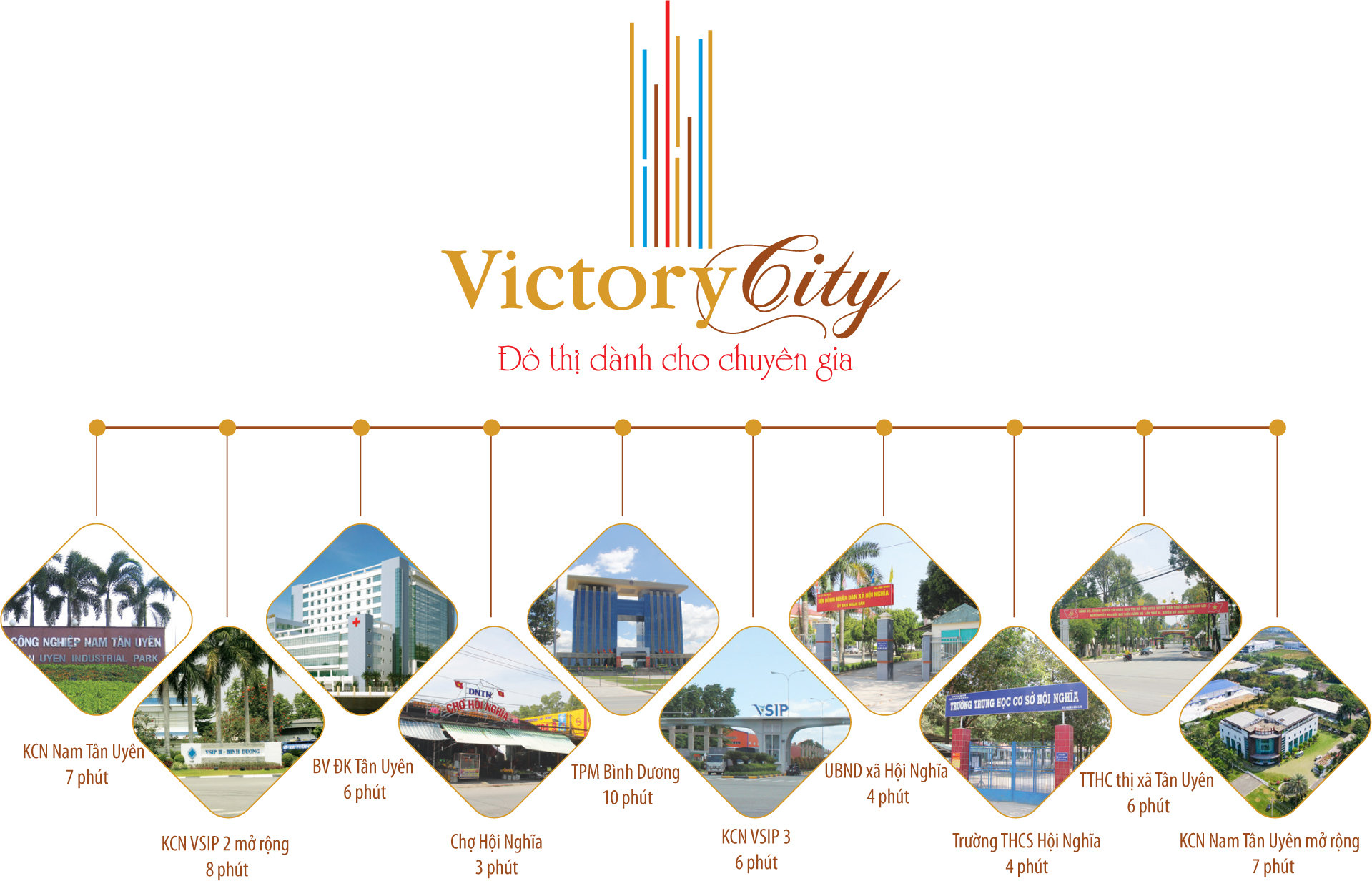 Bên cạnh các tiện ích hiện hữu bao quanh, Victory City còn sở hữu không gian sống trong lành và tích hợp chuỗi tiện ích hiện đại, như chợ, trung tâm thể thao, trung tâm y tế, công viên, phố thương mại với các cửa hàng tiện lợi, thời trang, ẩm thực, chăm sóc sức khỏe. Đây sẽ là nơi an cư xứng tầm cho các doanh nhân, chuyên gia nước ngoài, lực lượng lao động đến làm việc trong các khu công nghiệp như VSIP 3, Nam Tân Uyên, Nam Tân Uyên mở rộng…