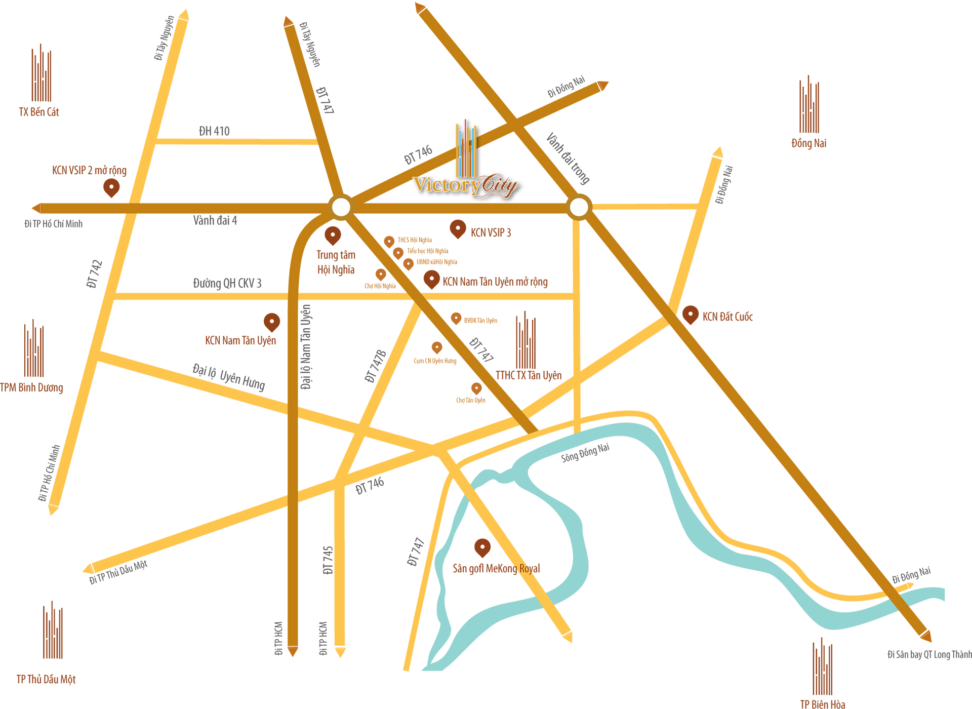 + Trong tương lai, cư dân Victoria City còn được thừa hưởng Cao tốc TP. HCM – Lộc Ninh có đoạn dẫn vào Tân Yên